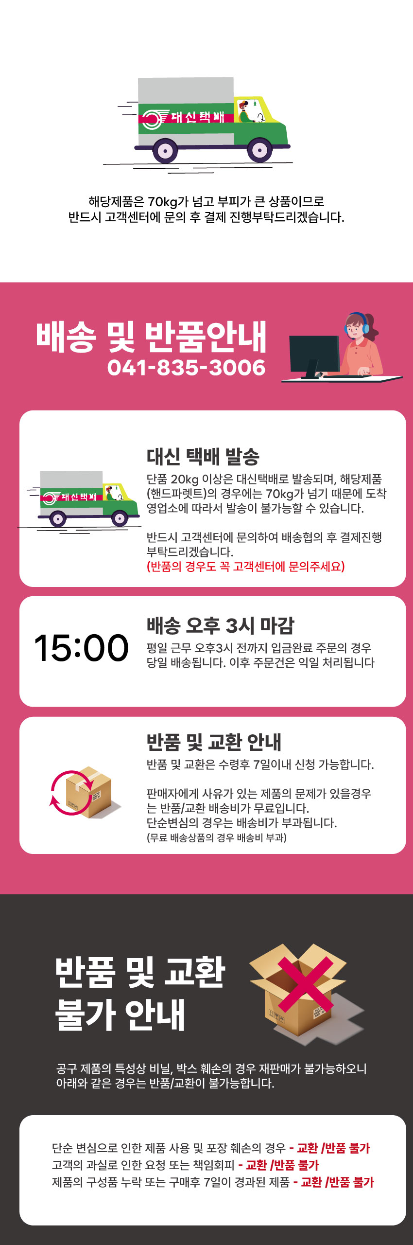 배송방법, 제품에 따라 출고시 정확하게 배송비 책정이 가능해지므로 고객센터로 문의해주세요.