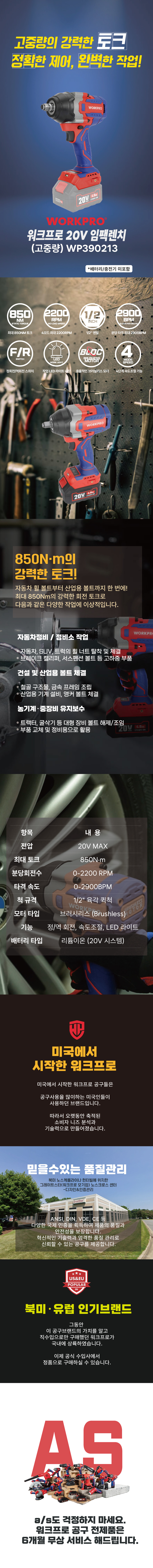 • 규격 WP390213 고중량(베어툴) 850N.M