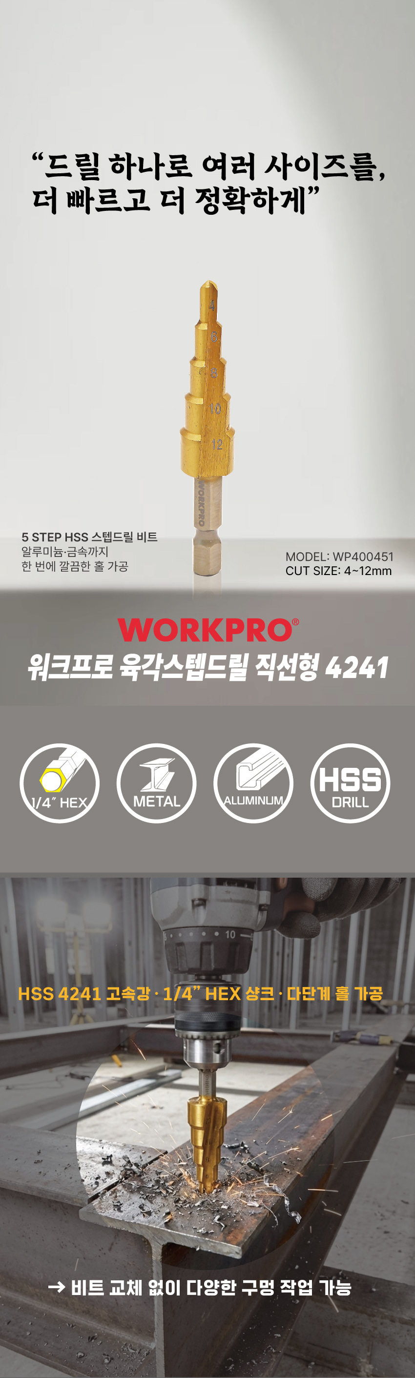 워크프로 육각스텝드릴 직선형4241