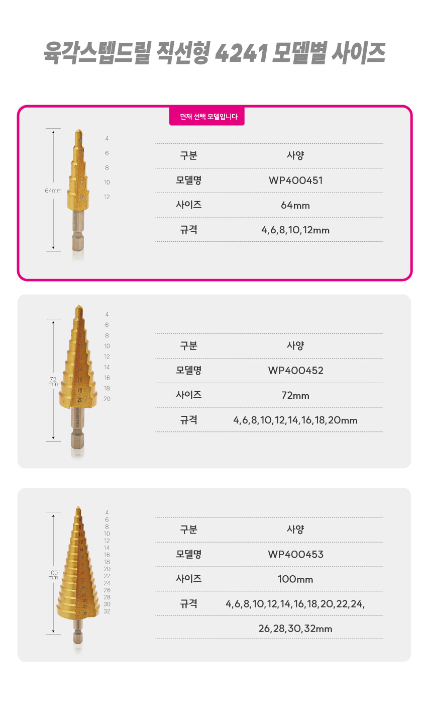 • 상품명 워크프로 육각스텝드릴 직선형4241