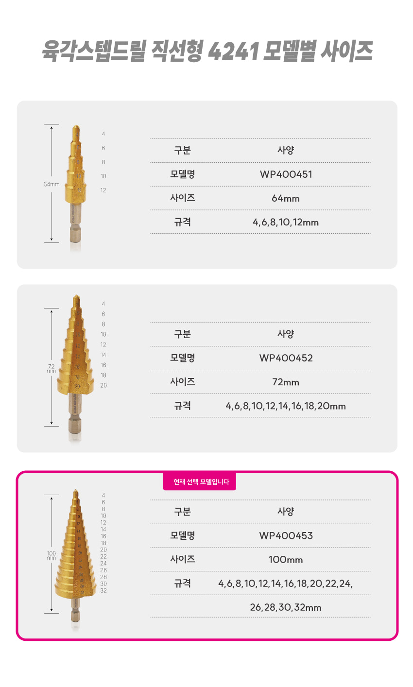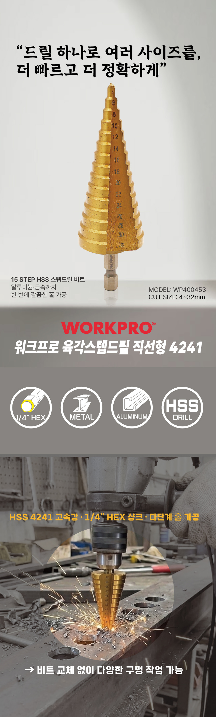 • 상품명 워크프로 육각스텝드릴 직선형 4241