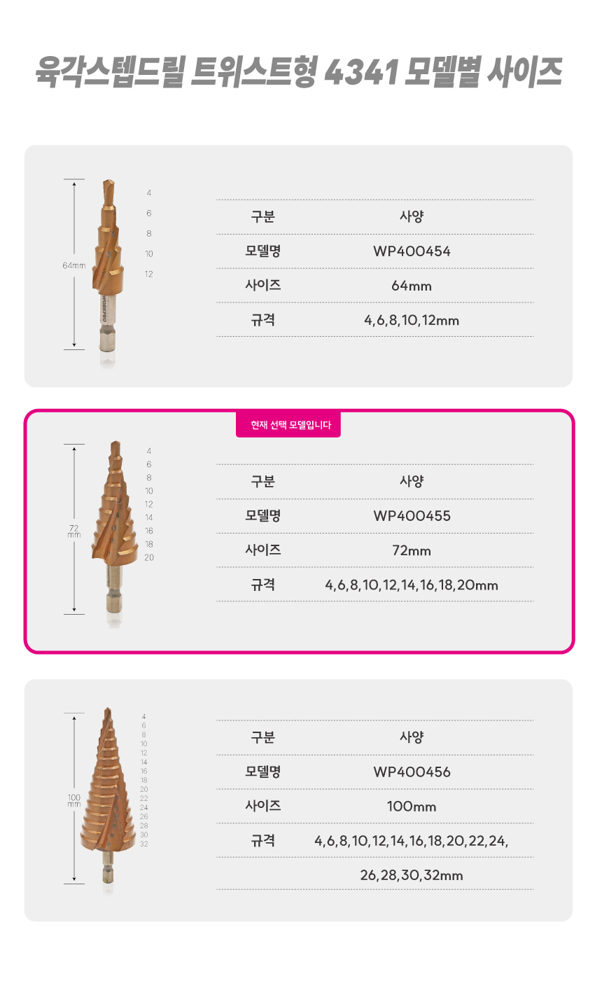 • 상품명 워크프로 육각스텝드릴 트위스트형4341